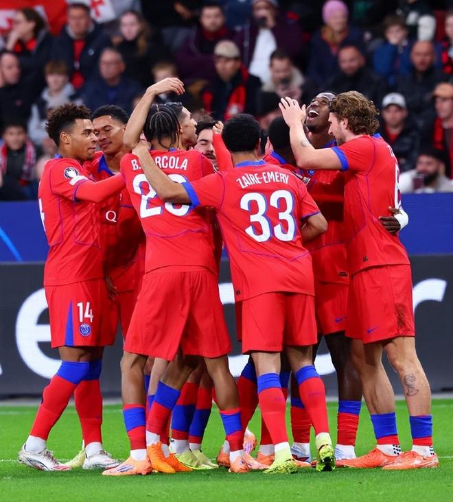 上赛季在恩里克的带领下,巴黎历史上首次夺得欧冠冠军,还在赛季开始前夺得了欧洲超级杯冠军。作为卫冕冠军,巴黎在欧冠前两轮比赛中以4球击败亚特兰大和巴塞罗那。北京时间10月22日凌晨,巴黎圣日耳曼抵达拜耳球场,客场对阵勒沃库森。恩里克的球队绝对狠,打进7球。巴黎圣日耳曼以7:2的胜利归来。尤德曼接替十哈格成为勒沃库森新任主帅后,球队成绩明显反弹,赛前7场比赛保持不败。此战,克瓦拉切利亚回归,与巴科拉、迈尤鲁组成进攻三叉戟;杜埃继续踢中场,与埃默里和维塔尼亚搭档;努诺·门德斯、帕乔、扎巴尼和阿什拉夫领衔防守,谢瓦利埃守门。上半场比赛,两队互交白卷开始直接攻击;第7分钟,门德斯战术角球送出传中,帕乔高高跃起头球破门,1:0!巴黎圣日耳曼队取得了出色的开局。第25分钟,扎巴尔尼禁区内犯规被判黄点,但格里马尔多主罚点球击中立柱弹出!第29分钟,巴尔克拉传球,马尤鲁胸前射门弹回立柱。第33分钟,安德里奇争顶时直接破门。裁判观看VAR后,改判红牌并将其罚下场;然而仅仅5分钟后,扎巴尼瓦在禁区内对后卫犯规,领到第二张黄牌并被罚下场。亚历克斯·加西亚主罚点球,1:1!第41分钟,杜埃持球发起反击,立即杀入禁区拿球。克瓦拉克赫利亚接住球,立即击中中路。前者低射得分,2:1!在t第44分钟,巴黎前场反击成功。克瓦拉茨·赫利亚切入后击中立柱弹入网内,3:1!半场结束前,勒沃库森进攻失败,遭到快速反击。阿什拉夫分球精准,杜埃远射梅开二度,4:1!下半场结束后,两队进球相同。第50分钟,维蒂尼亚在前场左侧轻松持球,前插将球顶出。及时越过门德斯接近角射门,再下一城,5:1!第54分钟,阿莱克斯·加西亚突然起脚,在距离球门20多米处打出一脚强力远射。骑士站在那里,看着对方一波世界得分,5:2!第66分钟,门德斯左路直传。巴克拉的速度优势迫使他击败了塔普索巴,并横向击中了他。替补上场的登贝莱轻松推射破门噗通胯下入网,6:2!这是登贝莱获得金球奖以来的首个进球。勒沃库森成为继2014年2月沙尔克04主场1-6不敌皇马之后,欧冠历史上第二支在主场攻入6球的德国球队。第90分钟,维蒂尼亚在拱顶的大力射门穆拉也打进一记世界波,7:2!最终,此战巴黎7:2获胜;他们在3轮欧冠联赛中打进13球。凭借净胜球优势,击败同为3连胜的国米和阿森纳,占据榜首。